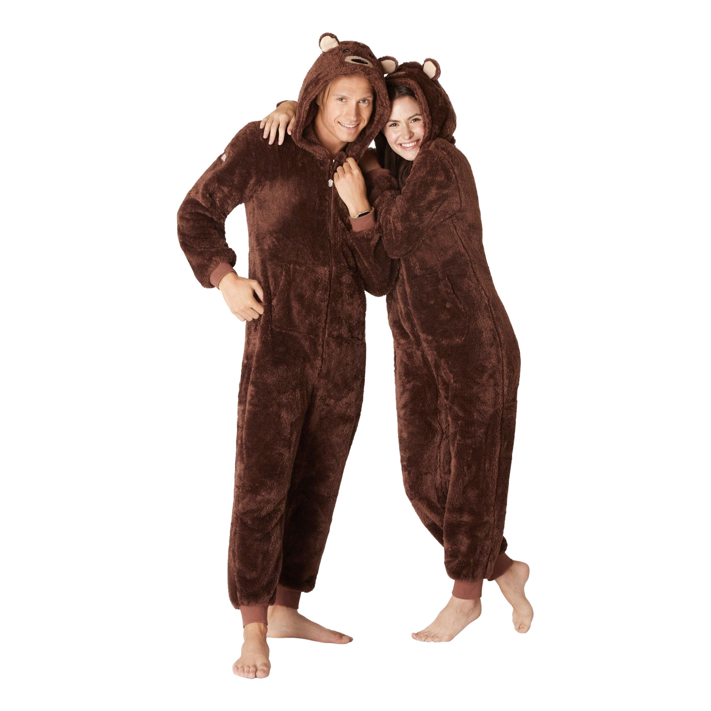 Brun Björn Onesie är tillverkad i mjukt och skönt teddyfleece som gör att den är varm och bekväm. Den är brun och har detaljer på luvan samt en liten svans. Att bära en av dessa känns lika bra som att få en kram!