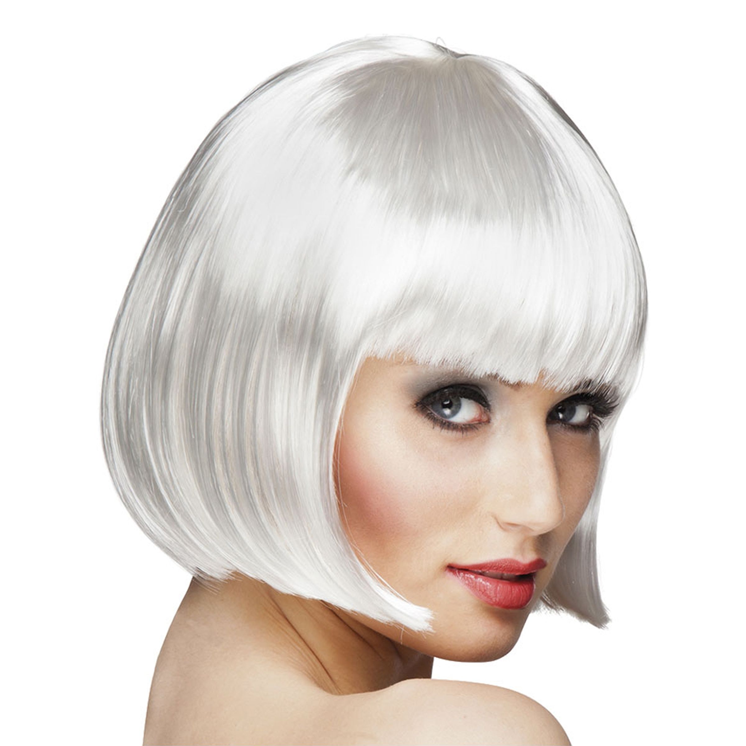 Bjuden på maskerad? Vem ska du klä ut dig till? Ja, kanske kan denna häftiga peruk vara en bra start! Den är riktigt cool med sin vita, medellånga frisyr med kort lugg.