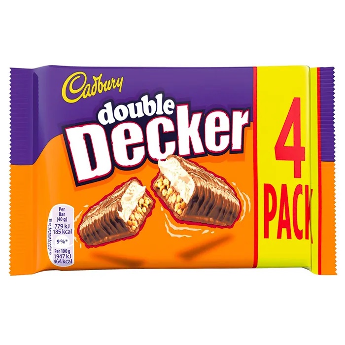 Cadbury Double Decker är en beundransvärd god bar med krispiga flingor och mjuk fluffig nougat med ett överdrag av led mjölkchoklad. En oöverträfflig kombination minst sagt!