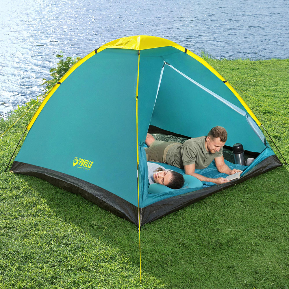 Sök äventyret med vårt 2-manna camping-tält Cooldome! Med en lättviktig konstruktion och snabb montering på bara åtta minuter, är detta tvåmanstält perfekt för weekendutflykter eller längre campingresor. Vårt kupoltält har en ingång och ett luftintag samt ett insektsnät och en ficka på insidan för extra förvaring. Ta med dig detta tvåmannatält för en bekväm och minnesvärd campingupplevelse!