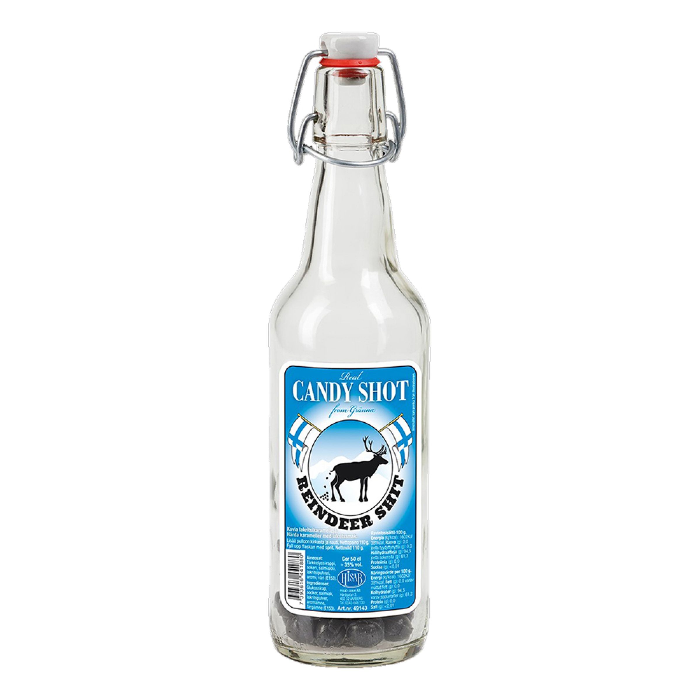 Candyshot Reindeer Shit är en 50 cl flaska med saltlakritskarameller i botten. Flaskan fylls med valfri spritdryck och blandningen är redo att avnjutas när karamellerna har lösts upp. Perfekt som alternativ till julsnaps!