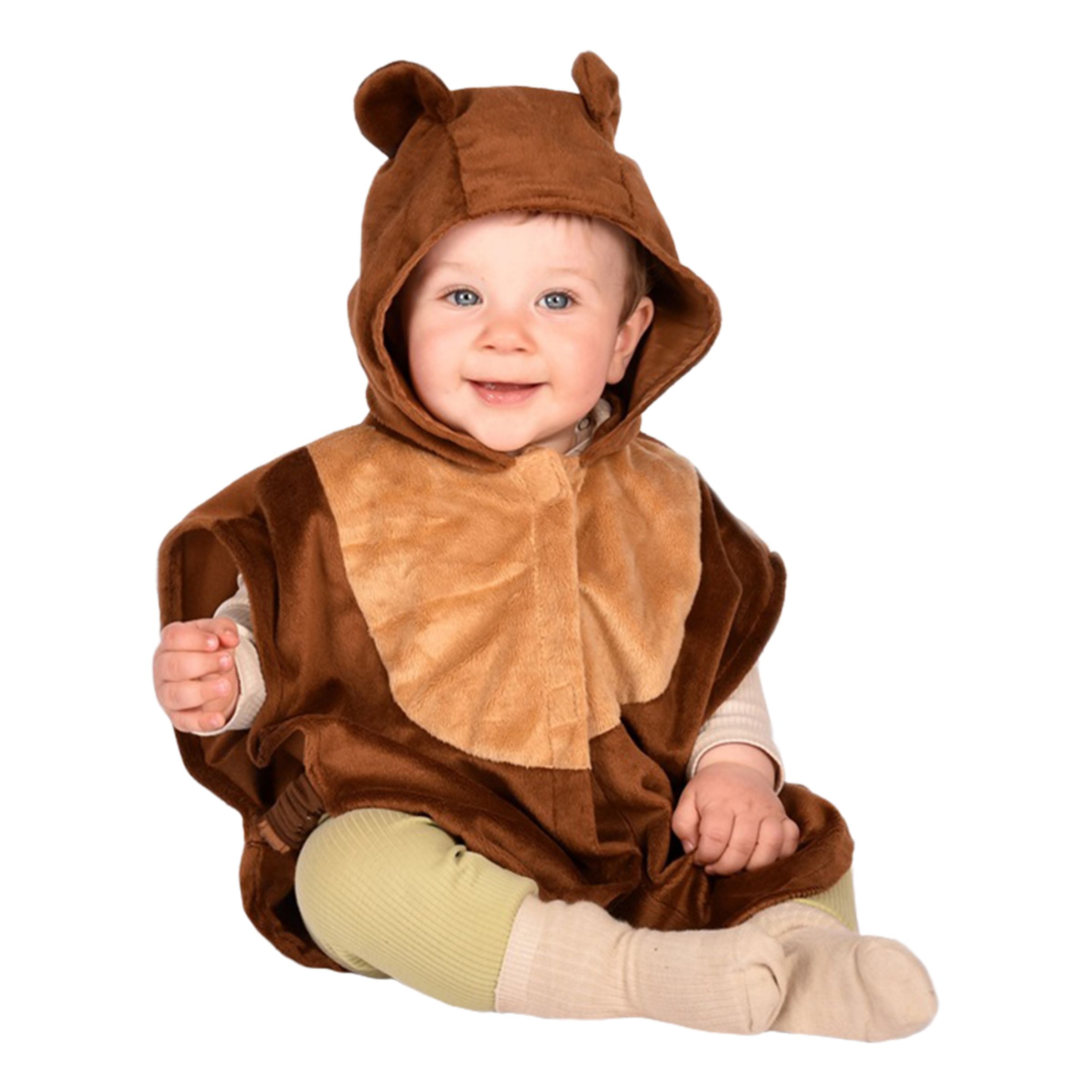 Cape för Barn Brun Björn kommer i en storlek som passar småbarn och består av en cape med huva och öron ovanpå. Capen täcker hela överkroppen, med hål för armarna, och fäster bekvämt med hjälp av kardborreband.