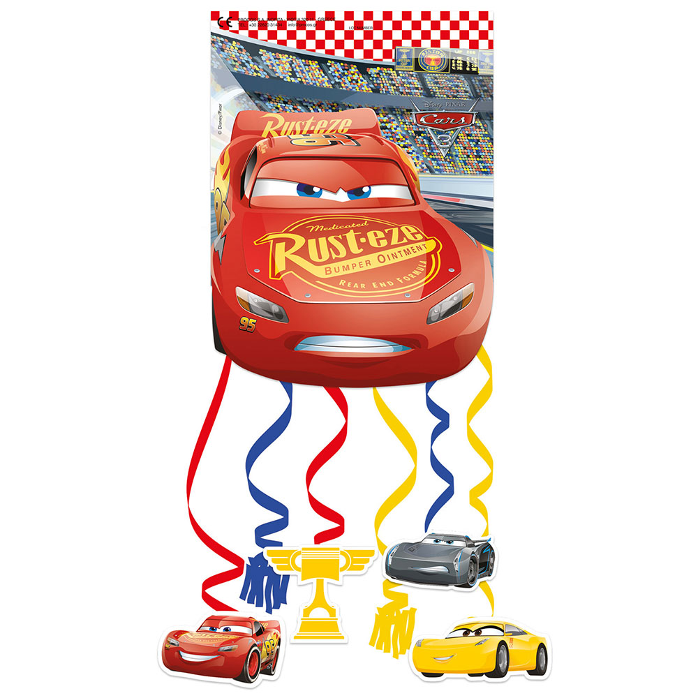 Cars 3 Pinata omfattar en pinata med fint Bilar 3 motiv och hängande snören. Pinatan är ca 28 x 21 cm stor och öppnas med ett av de hängande snörena. Godis ingår ej.
