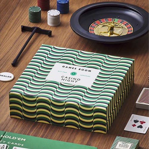Spelet kommer från Ridleys Games Room som designar klassiska spel men i snygga förpackningar och härliga mönster. Casino Night spelset är lika snyggt att ha liggandes framme som det är roligt att spela. Den utmärkta presenten och tillskottet till spelkvällarna!