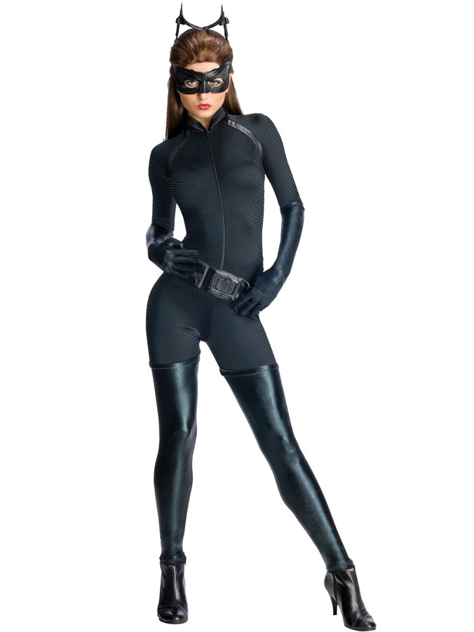 En tajt overalldräkt så att du inte bara stjäl värdesaker utan även hjärtan, ett bälte för att lagra alla dina hi-tech prylar, ett par handskar så du inte lämnar fingeravtryck och sist, för att komplettera din Catwoman suit, en mask och ett headpiece(som ser ut som kattöron).