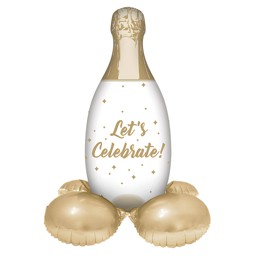 Denna folieballong vidliknar en champagneflaska som står på en härligt stadig bas och kan användas till roliga tillställningar som t.ex. bröllop, jubileum eller födelsedagar! Varför kan den användas till så många olika saker undrar du kanske, jo därför att texten på ballongen helt enkelt bara lyder "Let's celebrate" och faktiskt inte specificerar vad det är du bör fira!