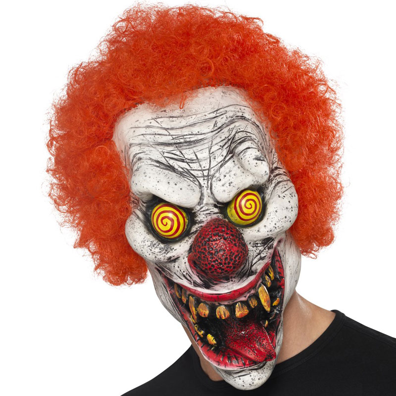 Skutta omkring Halloween högtiden och hypnotisera dina offer iförd denna läskiga clown mask som milt talat lär fördubbla pulsen på folket. En mer unik mask som kommer stå ensam i sitt slag bland alla andra killer clown masker.