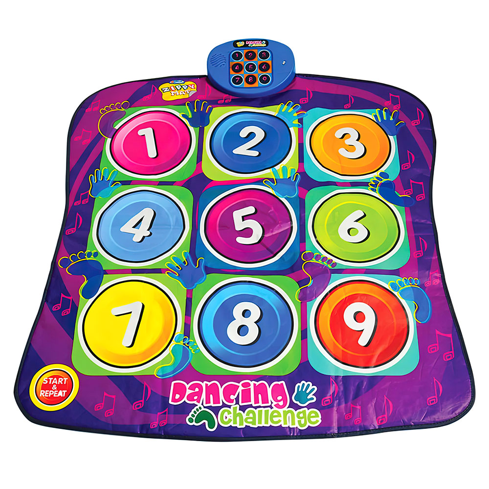 Dancing Challenge dansmatta är en helkul musikmatta som bjuder på en riktigt skojig utmaning där du får dansa samtidigt som du lär dig siffror. Starta utmaningen och hoppa eller dansa på de siffror som lyser upp. Råkar du hoppa på fel siffra sju gånger förlorar du och måste börja om, men om du däremot lyckas med utmaningen går du vidare till nästa svårighetsgrad. En riktigt rolig lekmatta med ljud och ljus som lär barnen siffrorna på ett riktigt skojigt sätt!