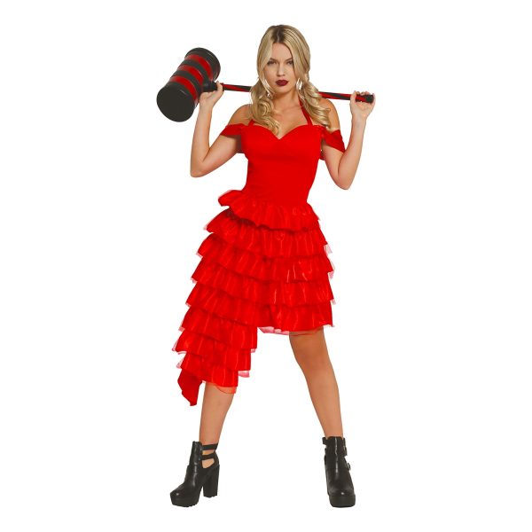 Dangerous Girl Klänning Maskeraddräkt består av en röd, snygg klänning med lager-på-lager effekt nedtill, med snygga axelband samt halterneck-band upptill. Nederdelen kommer med skimrande spetsdetaljer som gör den extra fancy.