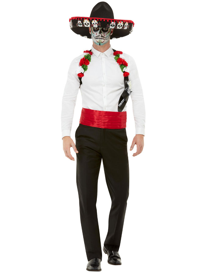 Med en snygg sombrero, ett tufft pistolhölster och ett brett sidenskärp kan du enkelt fullända din Day of the Dead utklädnad på bara några minuter. Ett riktigt snyggt Day of the Dead tillbehörskit för alla som är ute efter det där lilla extra till sin Halloween utklädnad.