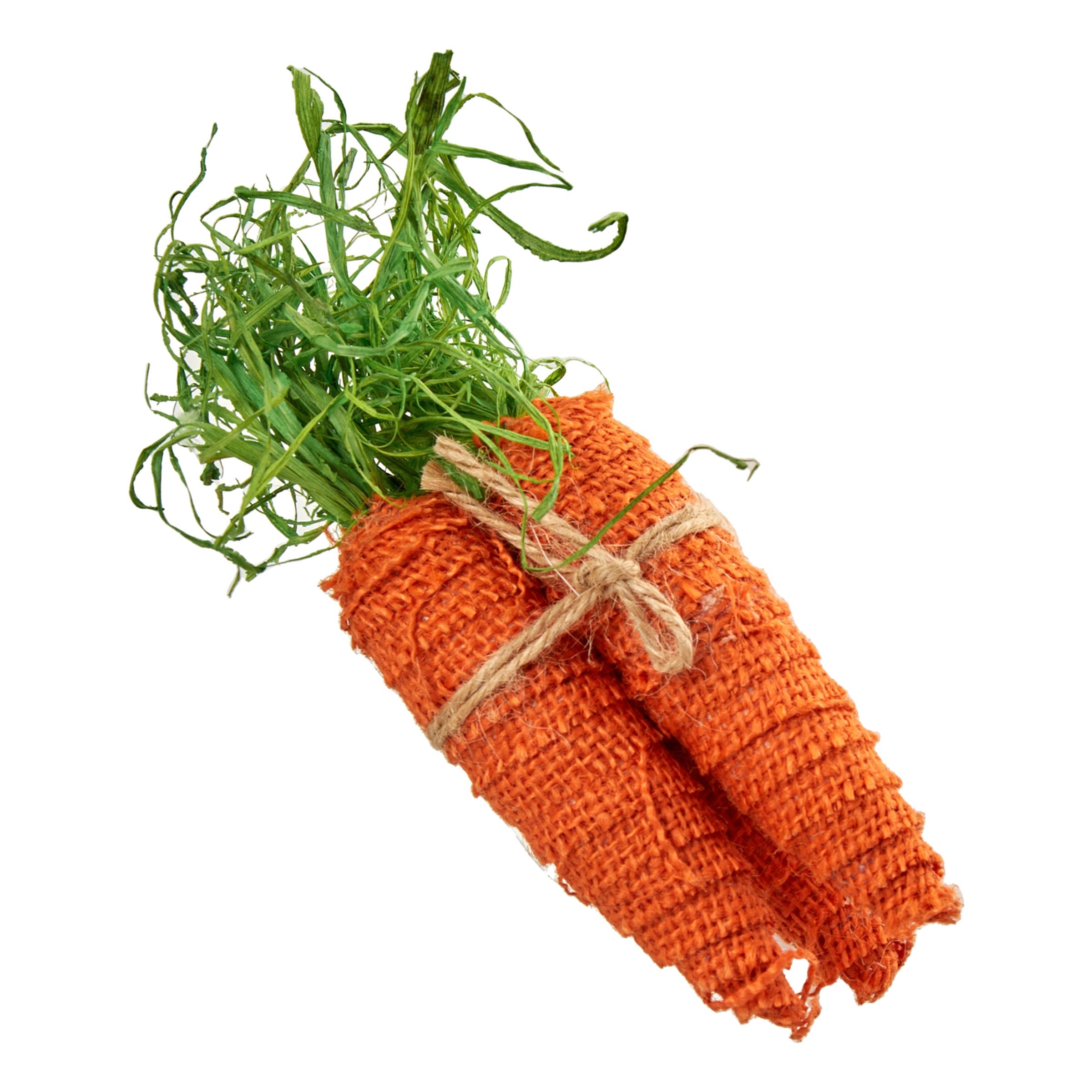 Dekorationskit Morötter innehåller tre stycken morötter i tyg hopbundna med naturtråd. En fin dekoration att lägga fram under påskhelgen!
