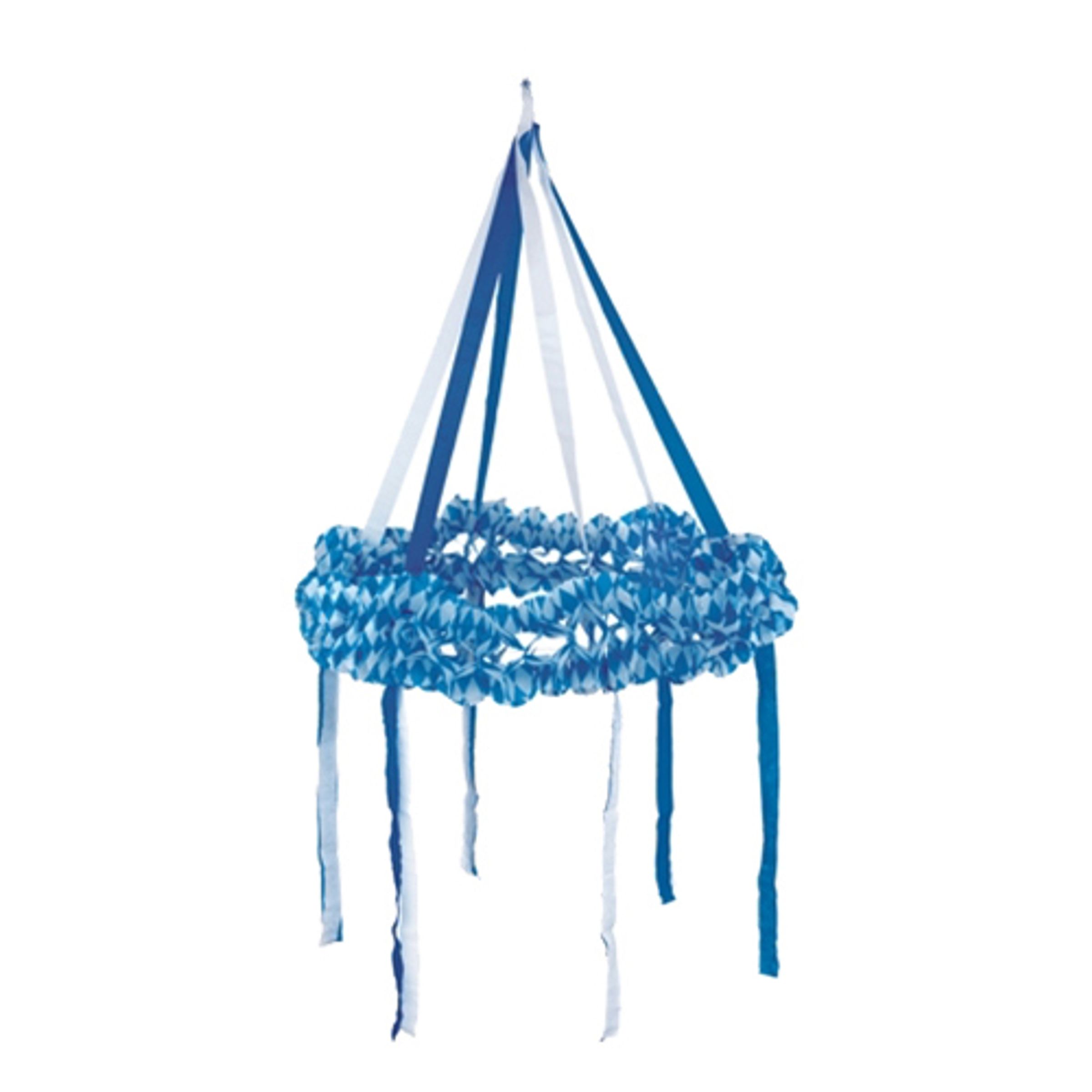 Dekorationskrans Hängande Bayersk Blå är en läcker takdekoration i blått och vitt av flamsäkert pappmaterial.