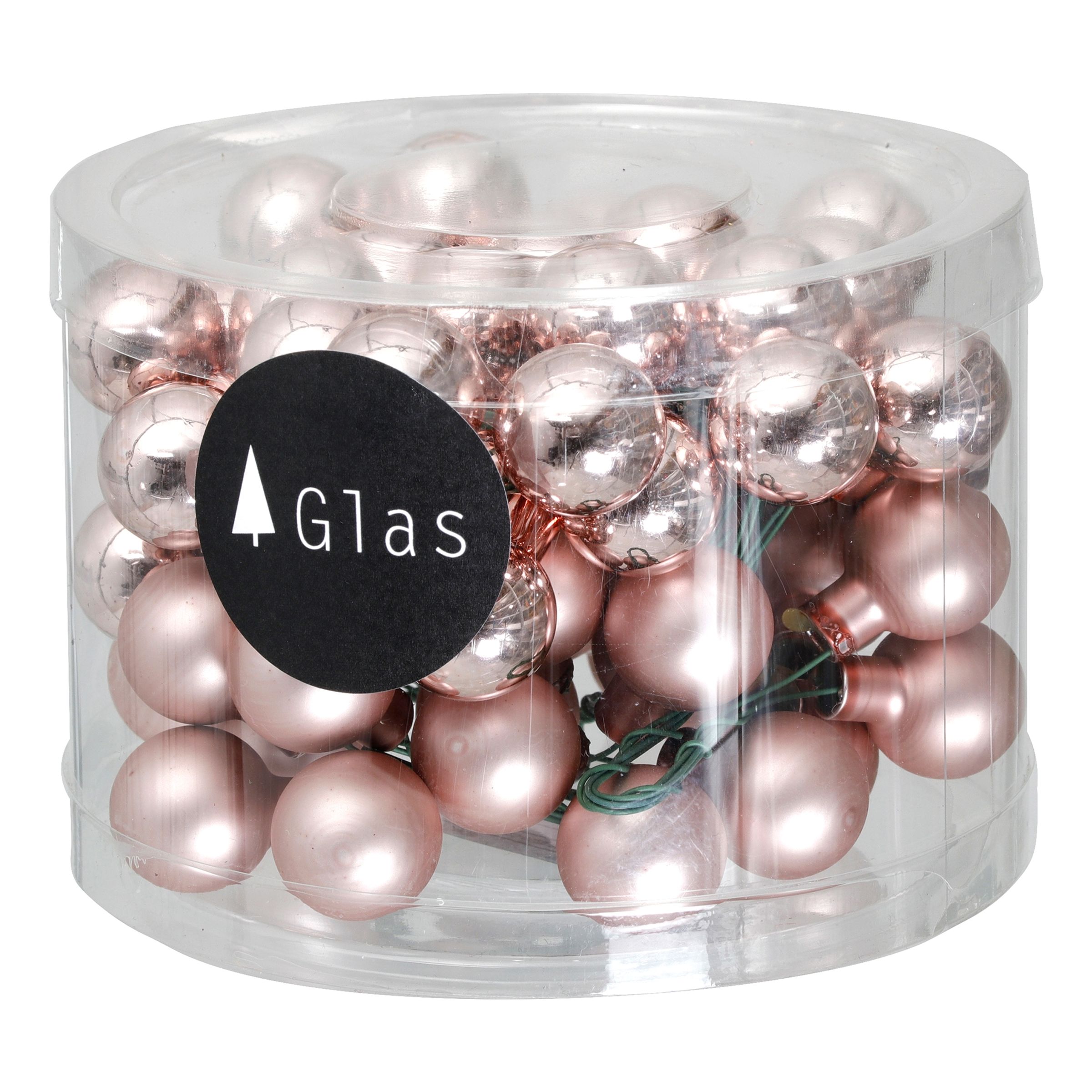 Dekorationskulor Små Rosa inkluderar 12 stycken små julkulor i både matt och glansig finish. Det medföljer snören för upphängning.