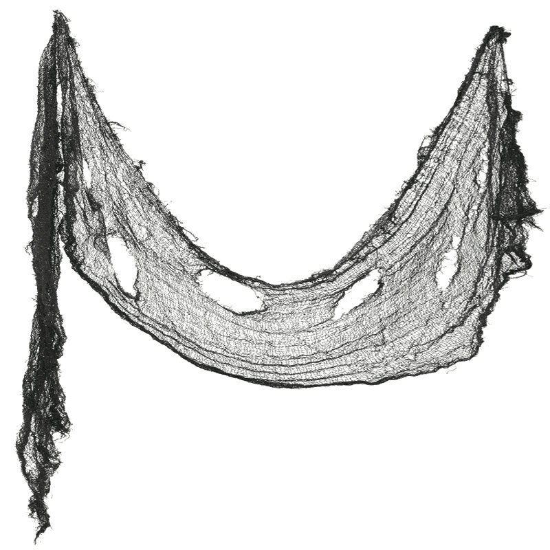 Dekorationstyg Terror är tillverkad av mjukt tygmaterial i svart design med slitna hål och fransar.
