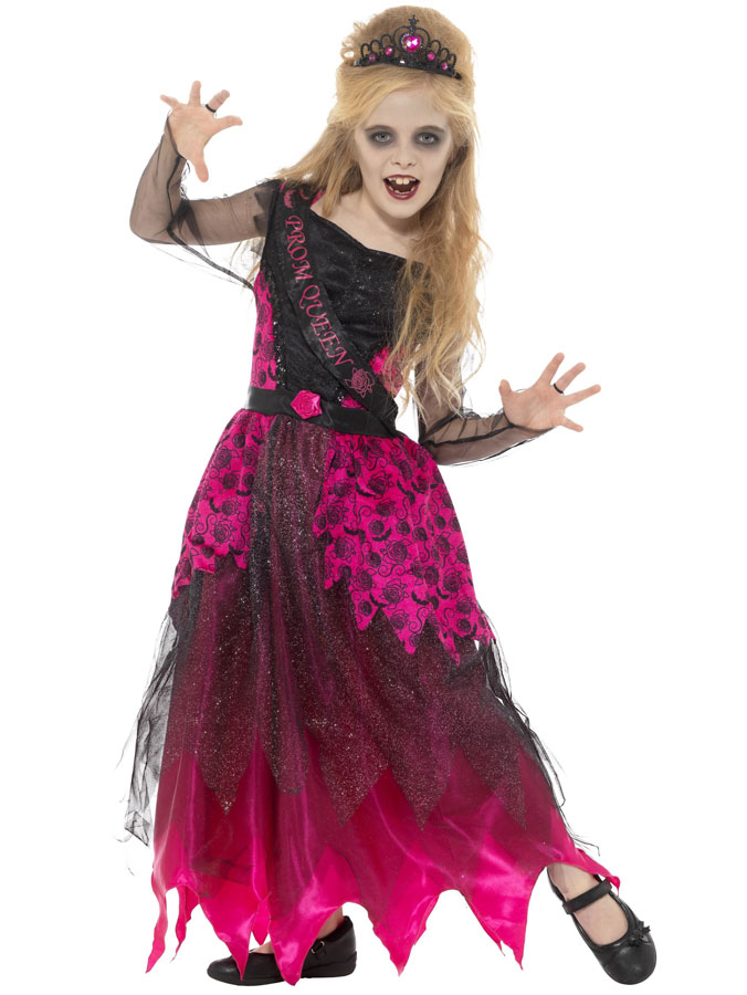 En snygg Prom Queen klänning för ditt barn som ska på maskerad eller Halloween fest! Bli balens läskigaste drottning med den här rosa och svarta klänningen i häftig gothic stil. En fin Halloween utklädnad som blir riktigt snygg till en häftig Halloween sminkning. Perfekt för alla flickor och pojkar som drömmer om att bli balens drottning!
