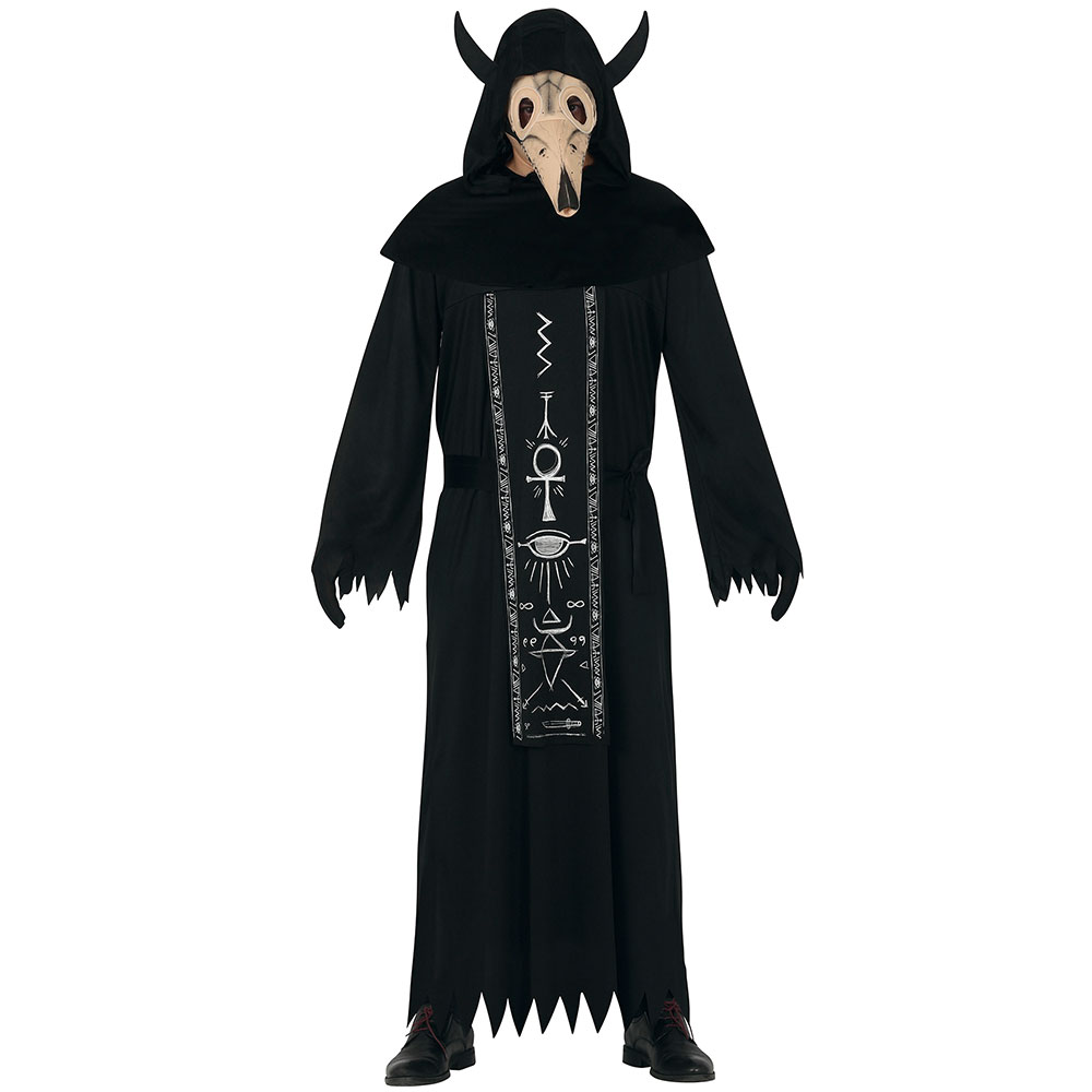 Denna utklädnad eller dräkt med motivet av en demon för halloween eller maskerad är redo att göra dig till festens obehagligaste gäst! Tunikan pryds av mystiska vita symboler och den inkluderar skrämmande tillbehör som hornförsedd huva och demon mask.