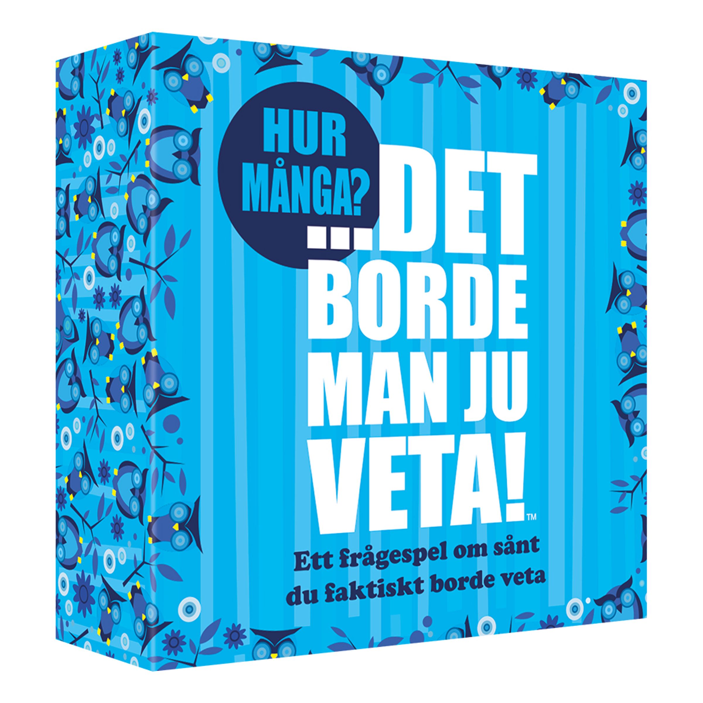 Det Borde Man Ju Veta – Hur många? Frågespel är fullproppad med över 400 kul och annorlunda frågor där svaret alltid är en siffra. Här tävlar alla mot alla om saker man egentligen borde veta och spänningen stiger snabbt för varje fråga! Men till skillnad från traditionella frågespel får man inte poäng för rätt svar – bara minuspoäng för fel!