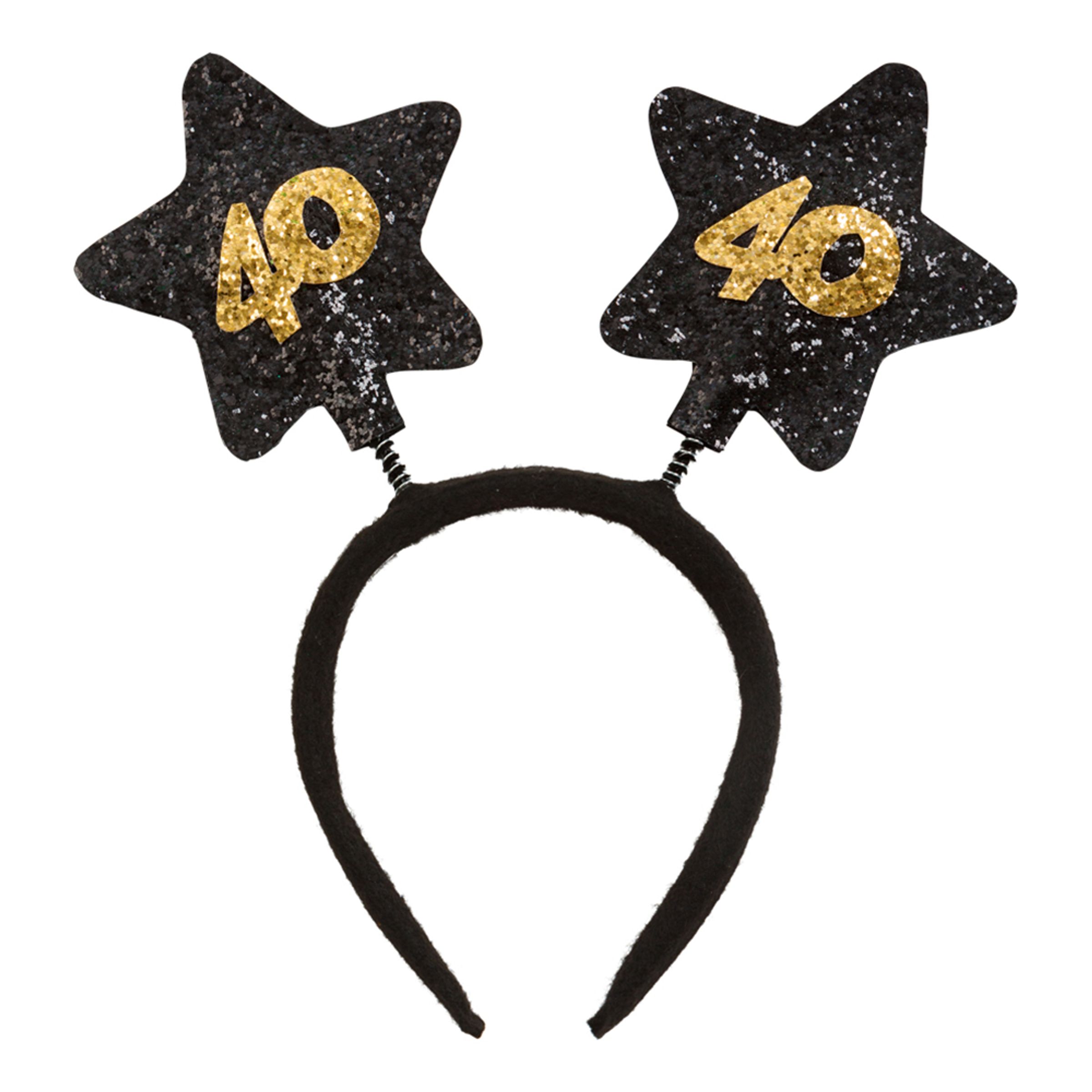 Diadem Birthday Star är ett svart diadem. På diademet sitter två stjärnformade och glittriga plattor med guldfärgade siffror. Välj mellan siffrorna 18, 20, 25, 30, 40, 50 och 60. Diademet finns i en storlek som passar vuxna och det är tillverkat i polyester.