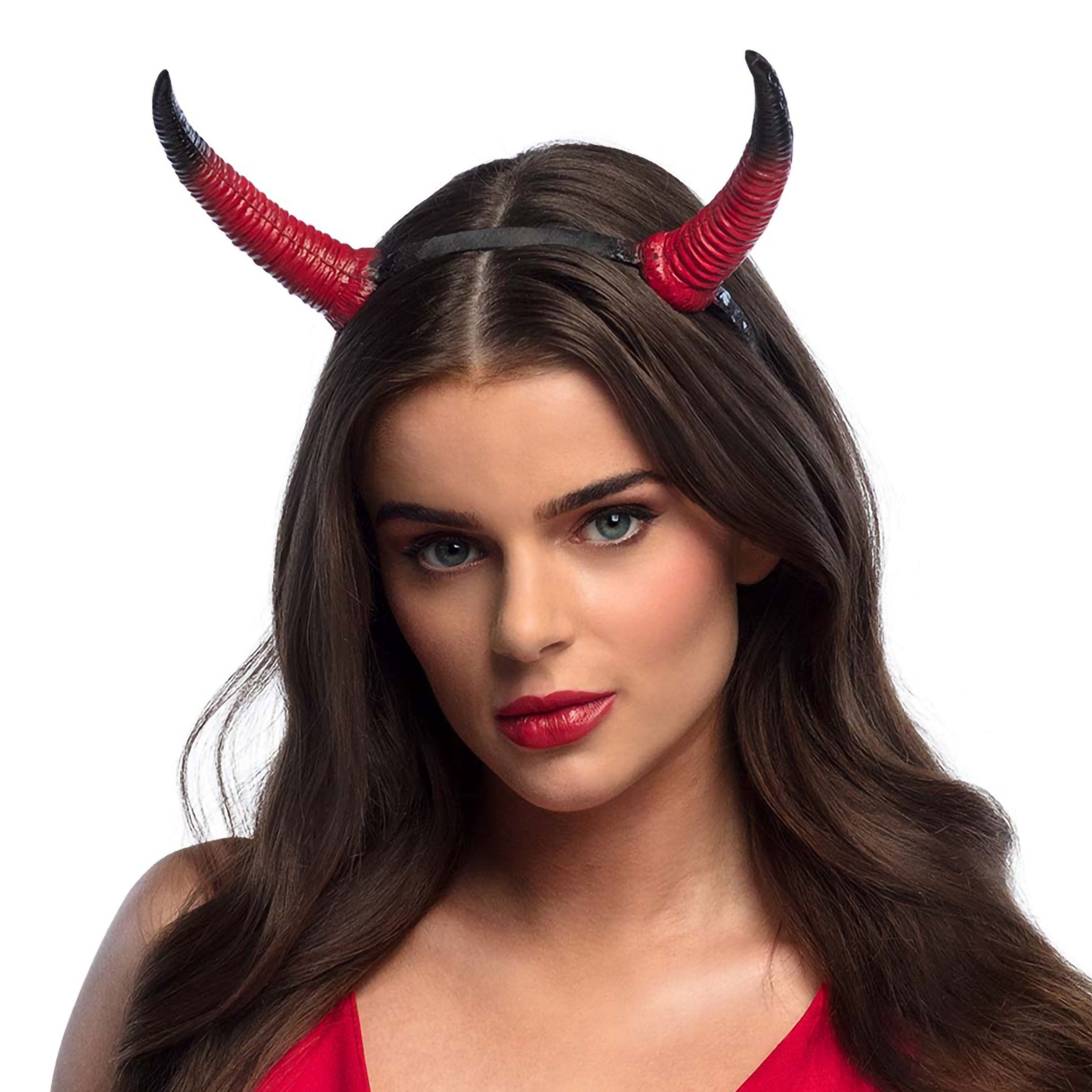 Diadem Djävulshorn är ett par röda autentiska horn som sitter fast på ett diadem för vuxna. Ett givet komplement för dig som planerar att klä ut dig till djävul på halloweenfesten!