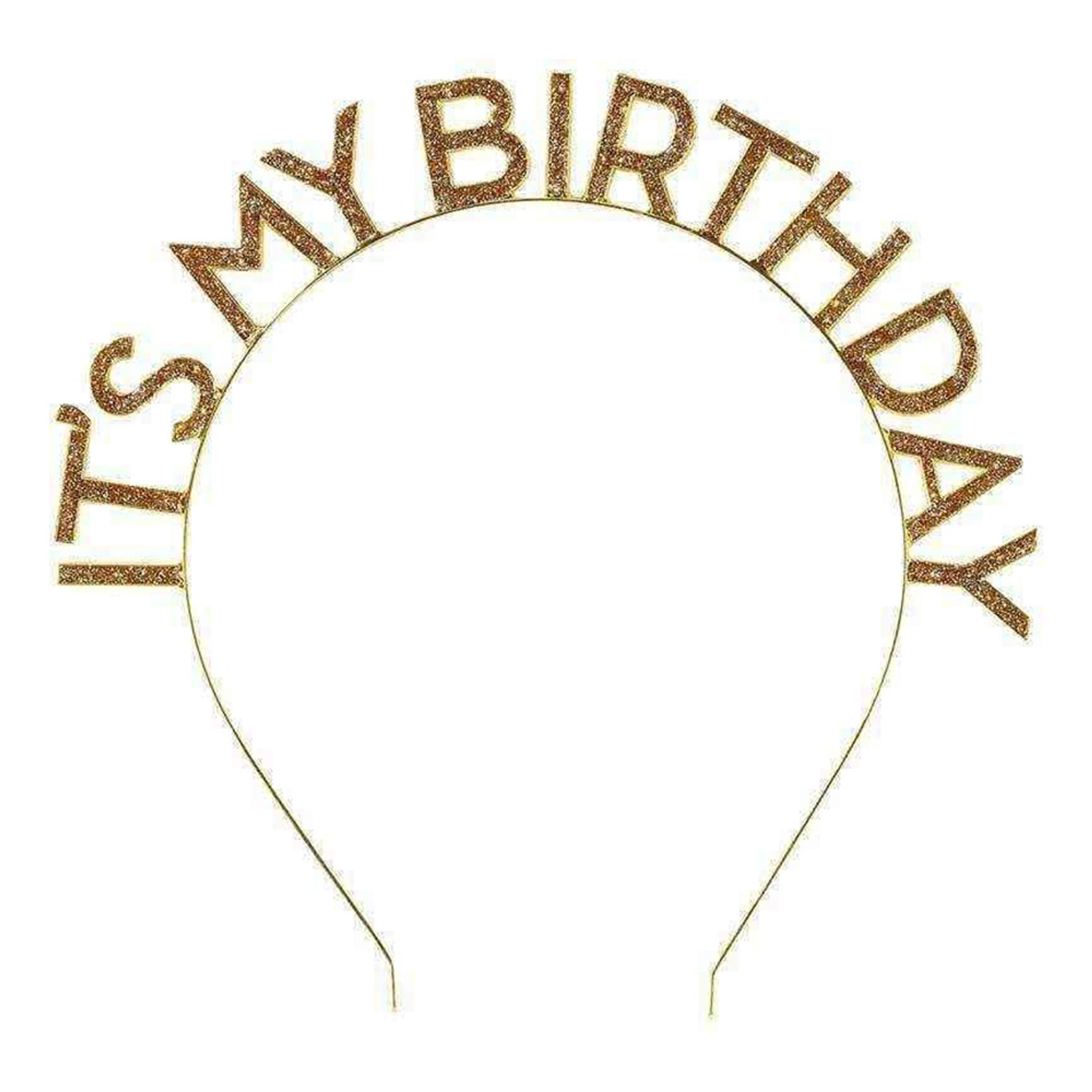Diadem It's my Birthday Guld/Glitter är ett guldigt diadem med glittriga bokstäver på. Diademet mäter ca 16,5 x 16,5 cm. Tillverkas i metall och levereras styckvis.