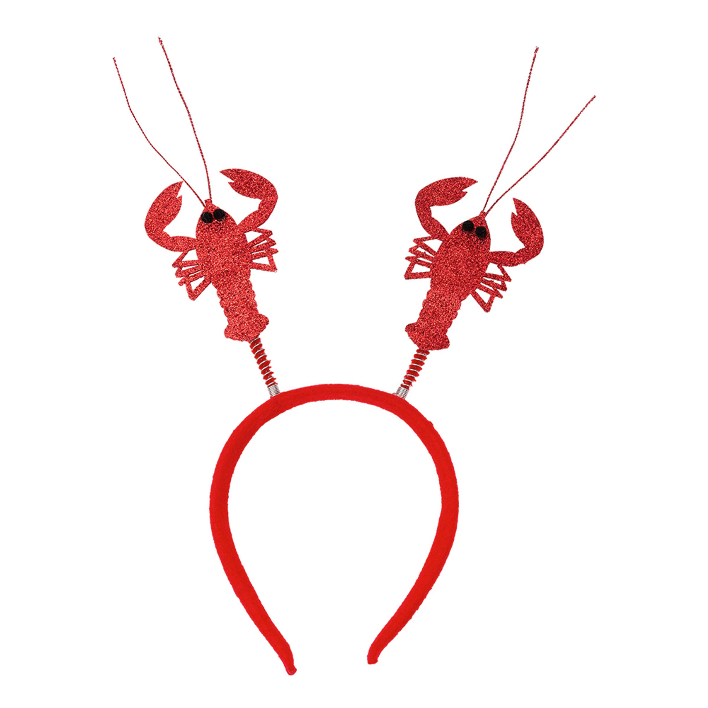 Diadem Kräftskiva levereras styckvis och kommer i en knallröd och glittrig färg. Antennerna består av två stycken glittriga kräftor och diademet passar såväl herrar som damer. Storleken är One size och kan justeras en aning.