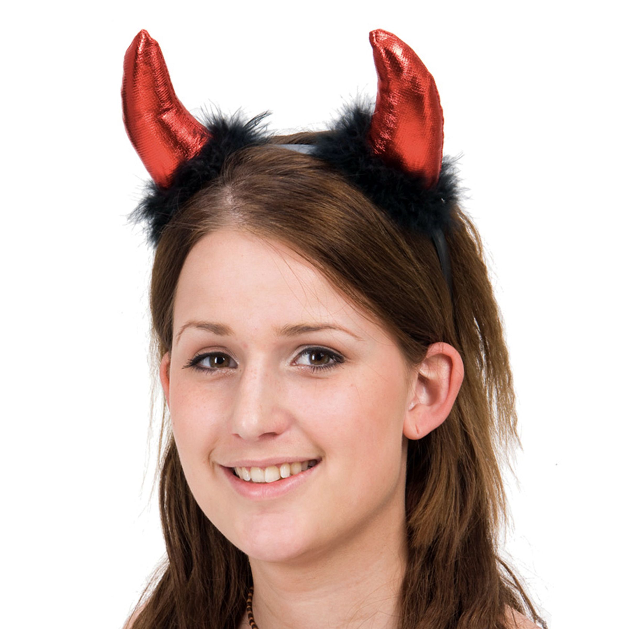 Fluffigt diadem med röda djävulshorn. One size.