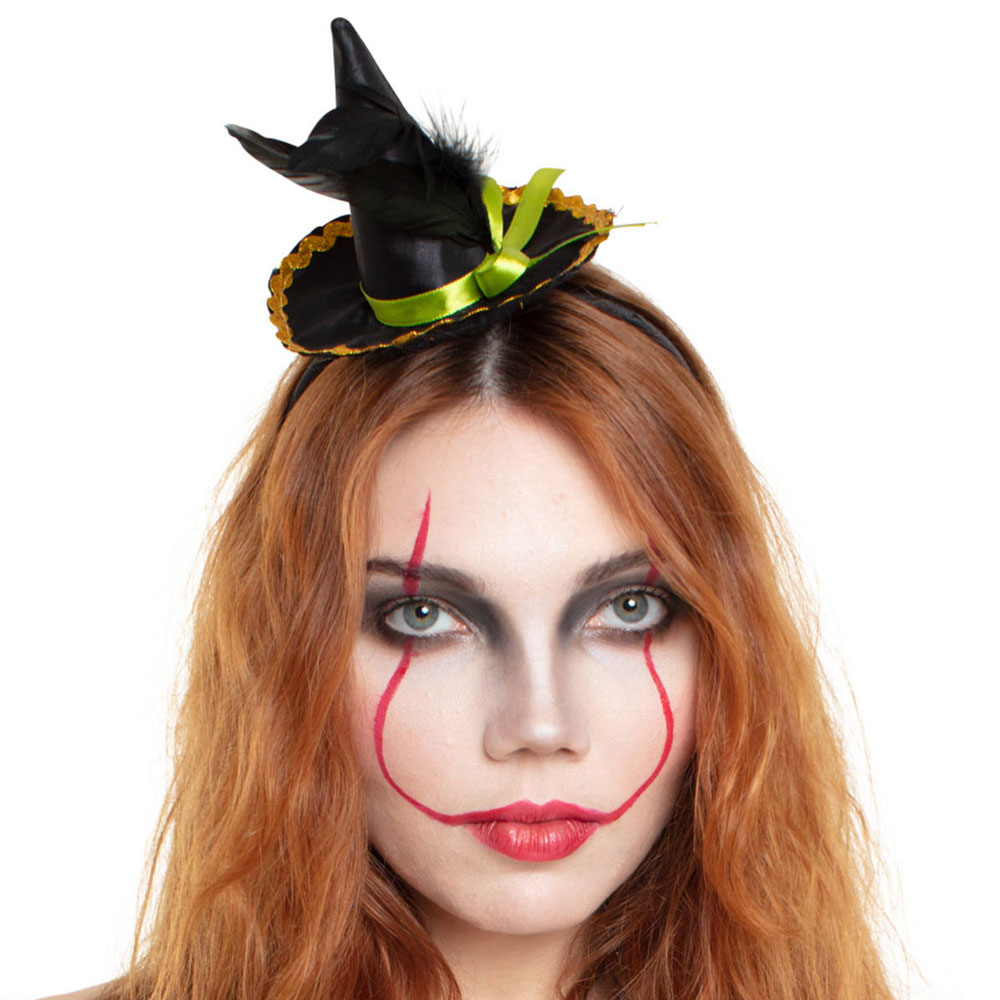 Få till den rätta häx-looken på bara några minuter med detta tuffa diadem! Ett super snyggt diadem med liten hatt på som är perfekt för dig som är ute efter en snygg häxhatt men inte vill eller kan bära en vanlig hatt. Tufft diadem med fin hatt som helt klart är en riktigt snygg accessoar och även ett smart tillbehör till din maskerad eller Halloween dräkt.