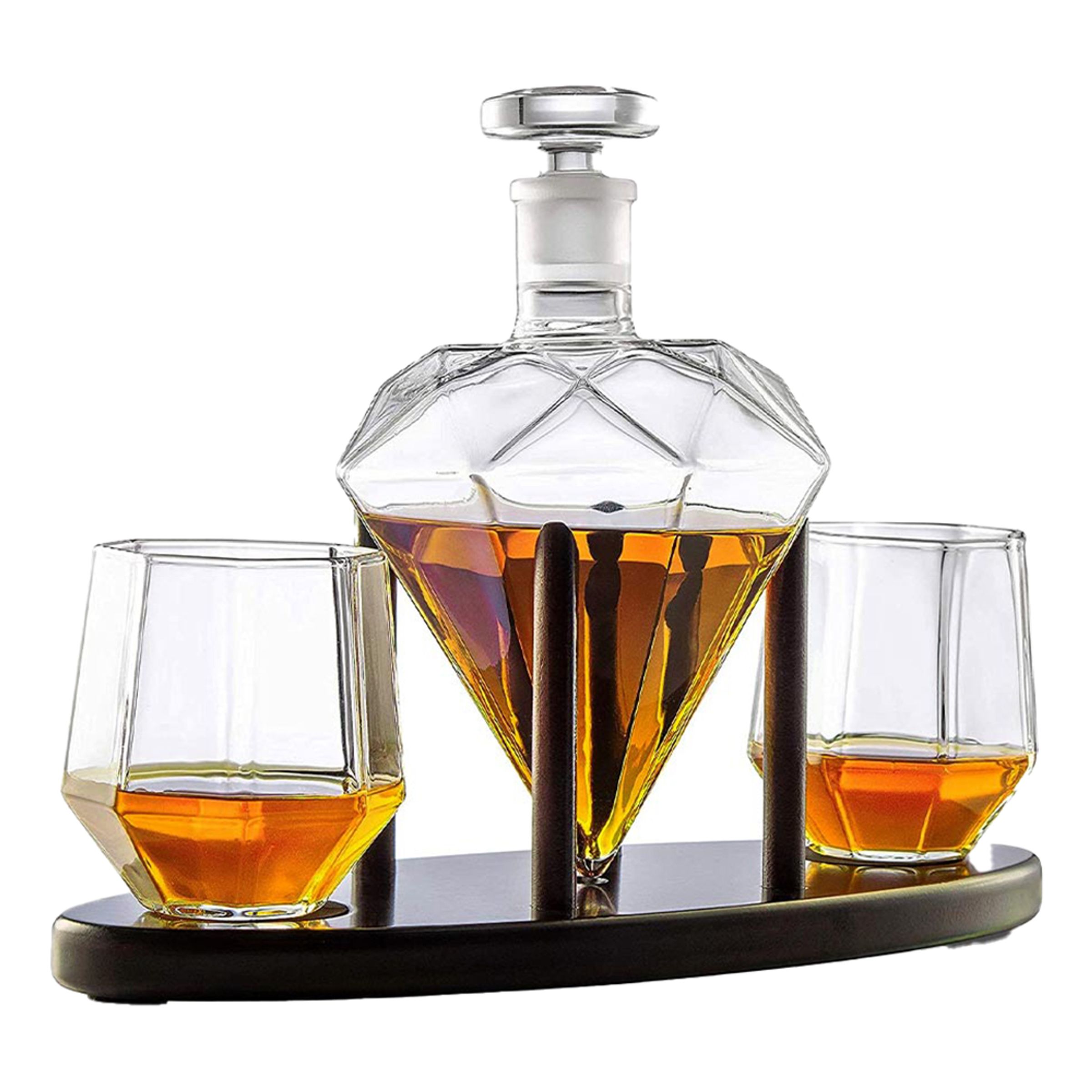 - Inkl. Diamantkaraff med glaskork, två glas och ställ av trä