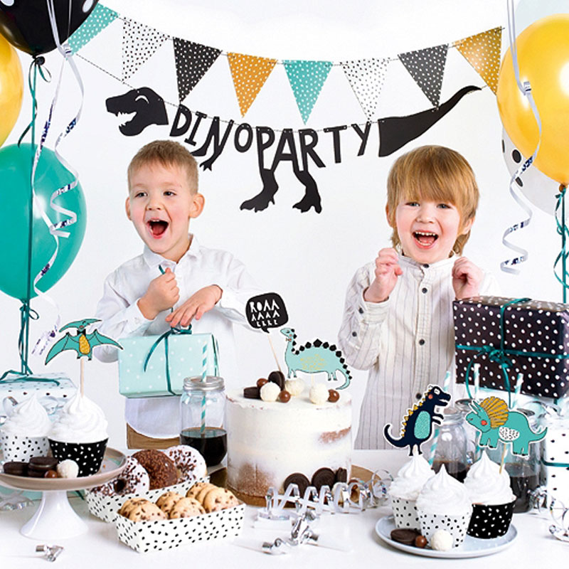 – 1 st banderoll "Dino Party" med dinosaurie motiv.