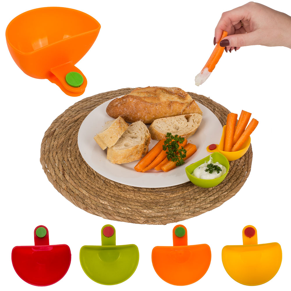 Med detta 4-pack av dippskålar med klämmor kan du enkelt förvandla din middagsupplevelse till något extra. De unika skålarna är utformade för att klämmas fast vid tallriken för enkel tillgång till din favoritdipp! Dessa dippskålar är inte bara funktionella, de är också ett roligt och färgglatt inslag på bordet som dina gäster kommer att älska.