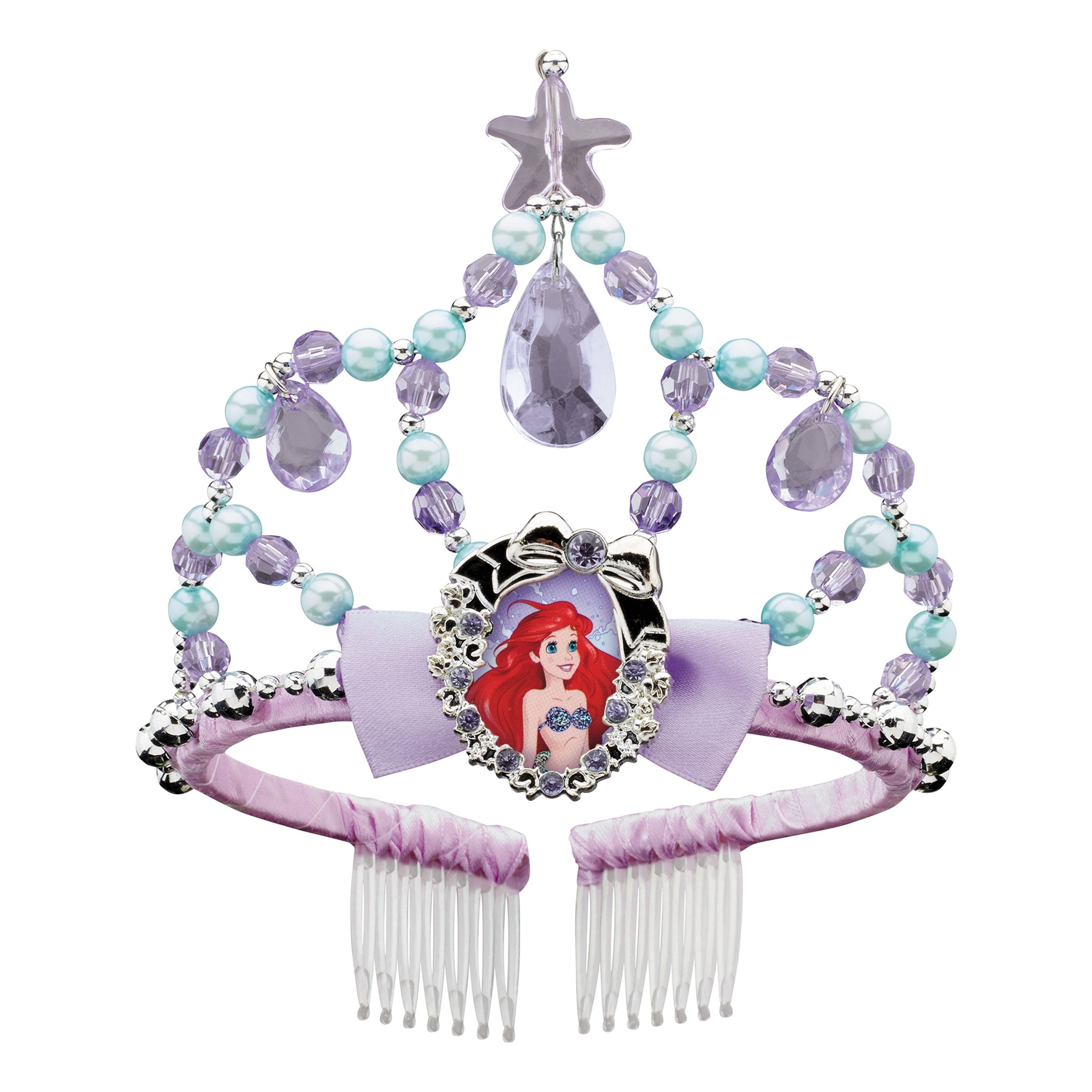 Disney Den Lilla Sjöjungfrun Tiara är en vacker tiara fylld av stenar och pärlor samt med en liten bild föreställandes Ariel i mitten. Ett måste för barnet som ska klä ut sig till Ariel på maskeradkalaset!