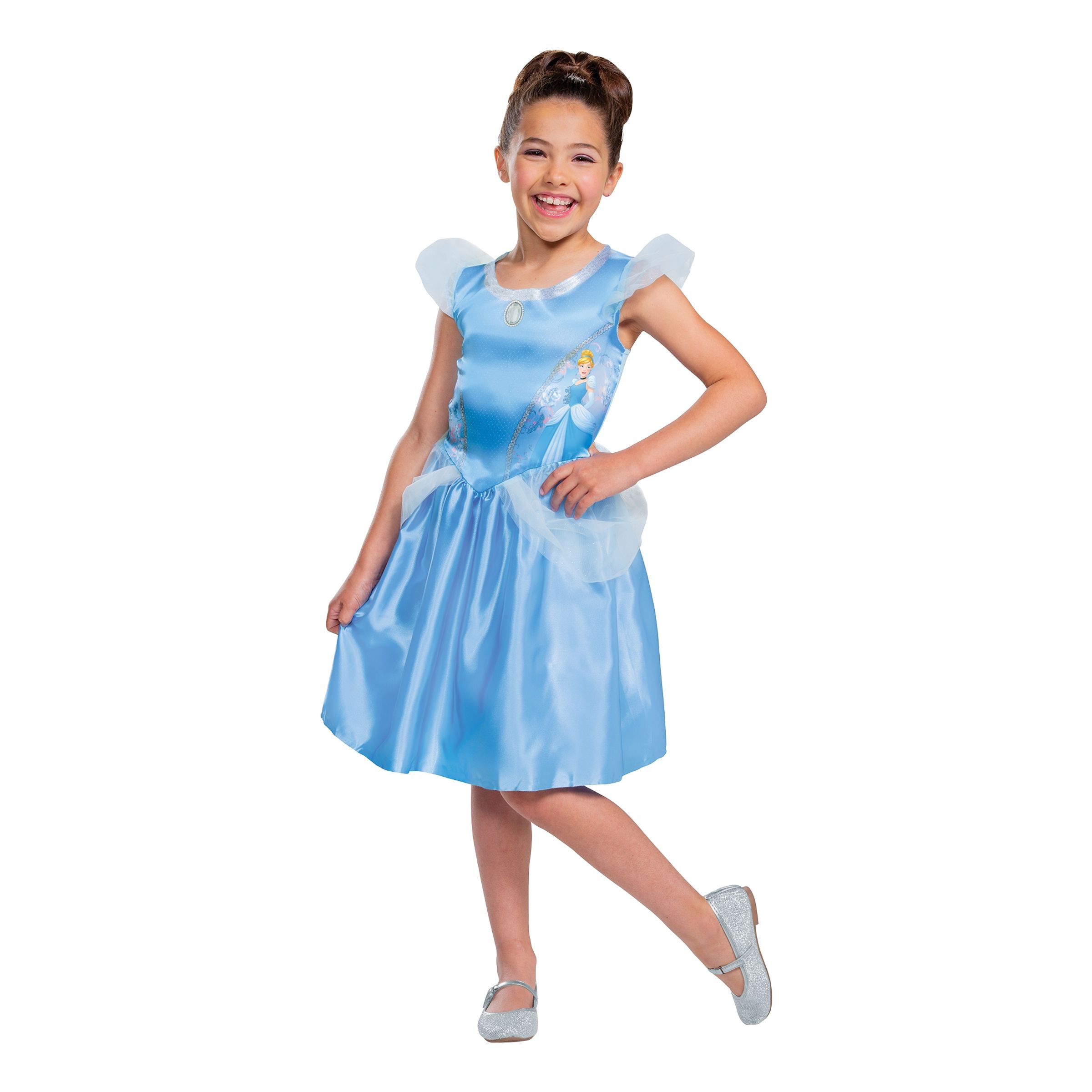 Disney Askungen Barn Maskeraddräkt inkluderar en blå klänning med många tjusiga detaljer såsom spetstyg vid midja och axlar, smycke med motiv vid bröstet och vackra motiv av Askungen på sidan av magen. En superfin klänning perfekt om ditt barn vill klä sig som Askungen på kalaset!