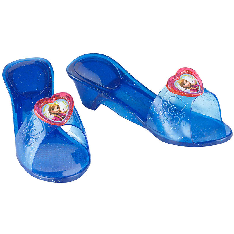 Disney Frost Anna Skor Barn omfattar ett par högklackade skor i blå nyans som kommer tillverkade av plastmaterial. Glitter sprider sig längs skorna, och ovanför tårna sträcker sig ett dekorativt band med en porträtt av Anna placerad i en rosafärgad hjärtform.