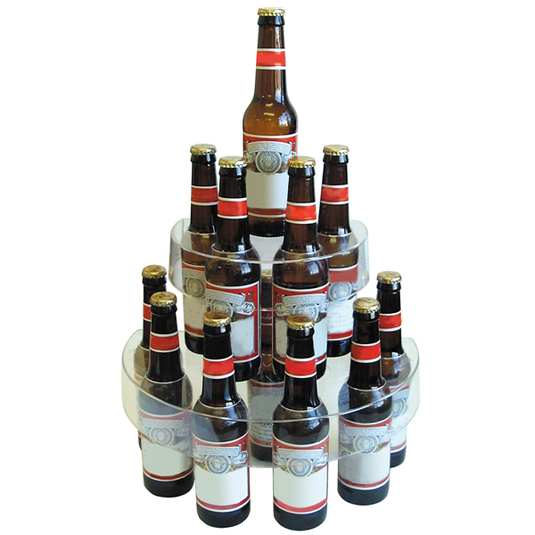 För att signalera lite extra att det är fest kan det vara ett bra grepp att dekorera med flaskor. Det ser generöst och glatt ut! Med detta flaskställ bygger du lätt en snygg pyramid med dryckerna.