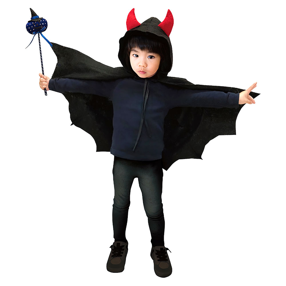 Läskig djävulsdräkt, perfekt Halloween utklädnad för barn! Kuslig svart mantel med luva med röda djävulshorn, en riktigt skrämmande dräkt som förvandlar ditt barn till en minidjävul på ett kick, perfekt kostym för Halloween kalas! Med denna maskeraddräkt vet man aldrig vad din nya djävulsavkomma till barn kan hitta på, så var på din vakt… Denna skrämmande Halloween barndräkt bjuder garanterat på kuslig stämning och tillsammans med andra skrämmande halloweendräkter blir det ett riktigt skrämmande Halloween kalas för läskiga varelser och barn!