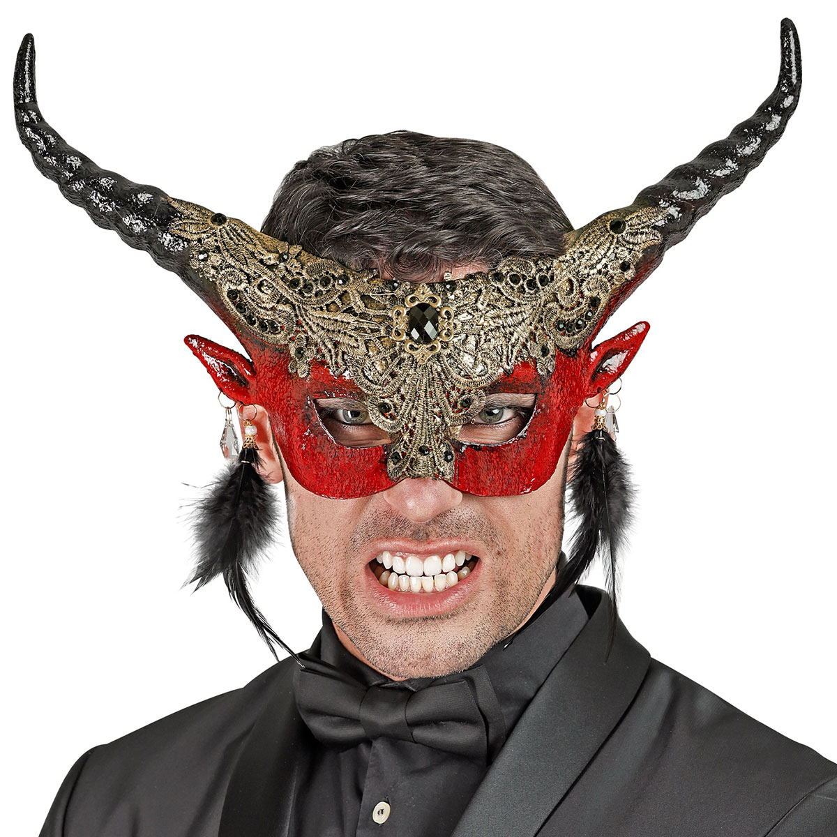 Förbered dig för en spännande halloween med denna mask med djävulstema på en maskerad fest, där alla deltagare bär unika ögonmasker prydda med eleganta detaljer som garanterar en magisk och minnesvärd upplevelse för alla närvarande gäster.