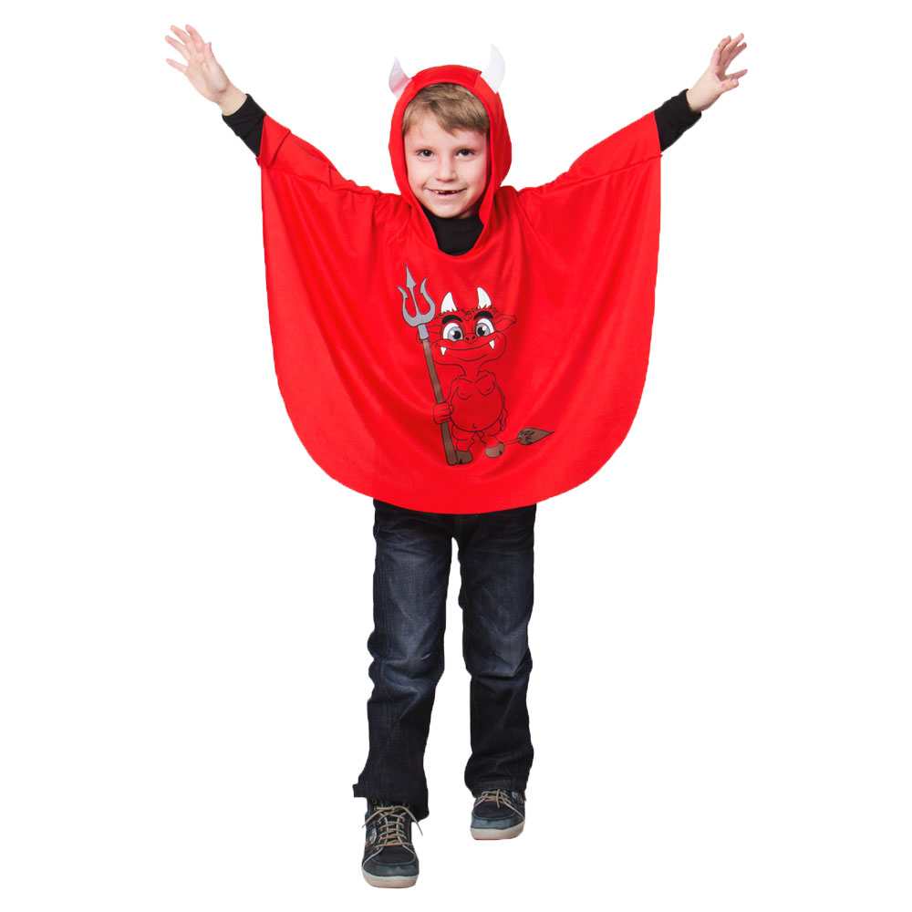 Vill ditt barn klä ut sig till en djävul finns här en söt djävuls-dräkt och kostym i form av en gullig poncho med huva och horn, perfekt utklädnad till Halloween kalas och maskerad party. Med denna outfit förvandlas ditt barn till en liten djävul på några sekunder, utmärkt kläder för en rolig Halloween.