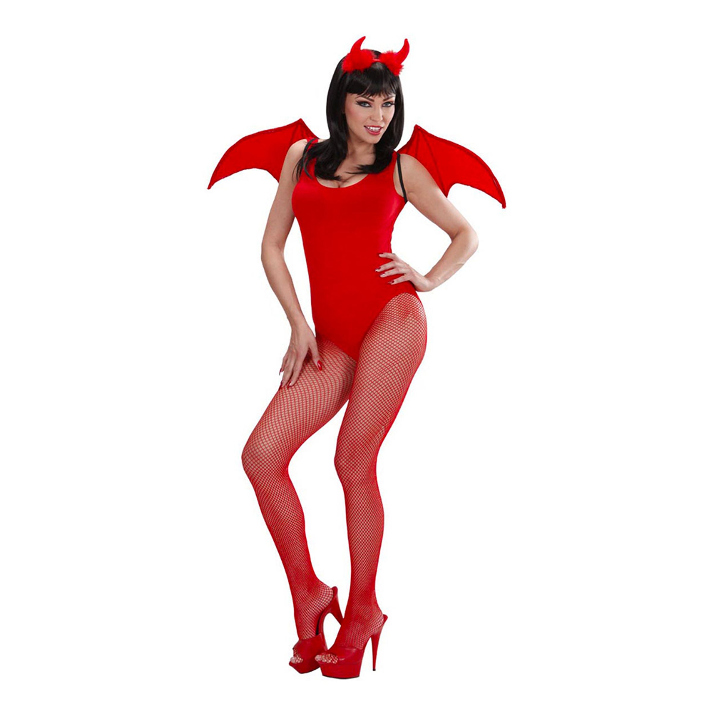 Djävul Röd Tillbehörsset är ett snyggt tillbehörsset för att bli den djävul du alltid önskat vara. Djävulssetet innehåller ett stycke diadem med röda horn, och ett par röda vingar som fästes enkelt på ryggen. Djävulssetet passar utmärkt till alla typer av maskerader och halloweenfester. Matcha gärna med en röd outfit och en djävulsgaffel.