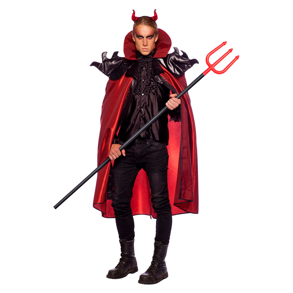 Klä ut dig till en klassisk, men också riktigt kuslig djävul med detta djävuls deluxe set! Detta halloween set innehåller ett par djävulshorn på diadem och en matchande cape som gör det möjligt att skapa en läskig djävul maskerad utklädnad på några korta minuter. Matcha detta djävulsdiadem och mantel med svarta kläder och kanske en läskig treudd så är din maskerad utklädnad komplett och redo för fest!