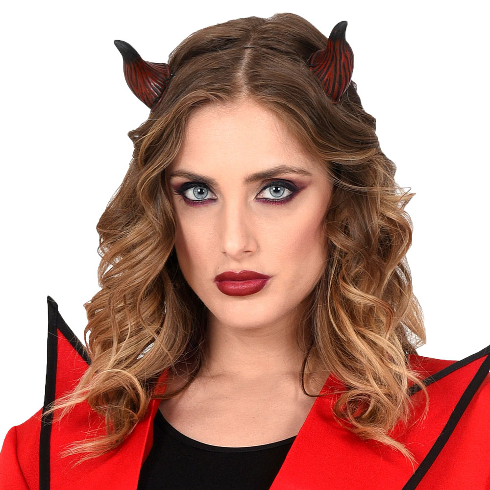 En djävul utan horn går ju inte, så se till att fullända din utklädnad med dessa häftiga små djävulshorn. Med dessa svart-röda horn kommer du enkelt få till en snygg djävul-look till halloween och maskerad. Läckra små horn som passar riktigt bra till många olika djävulsdräkter.