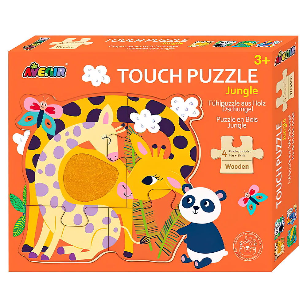 Här har du ett mysigt 4-pack trä pussel med motiv av olika djungel djur som giraff, panda, krokodil och papegoja som gosar med sina barn. Dessa barnpussel består av 4 stycken bitar på vardera pussel och passar barn från 3 år.
