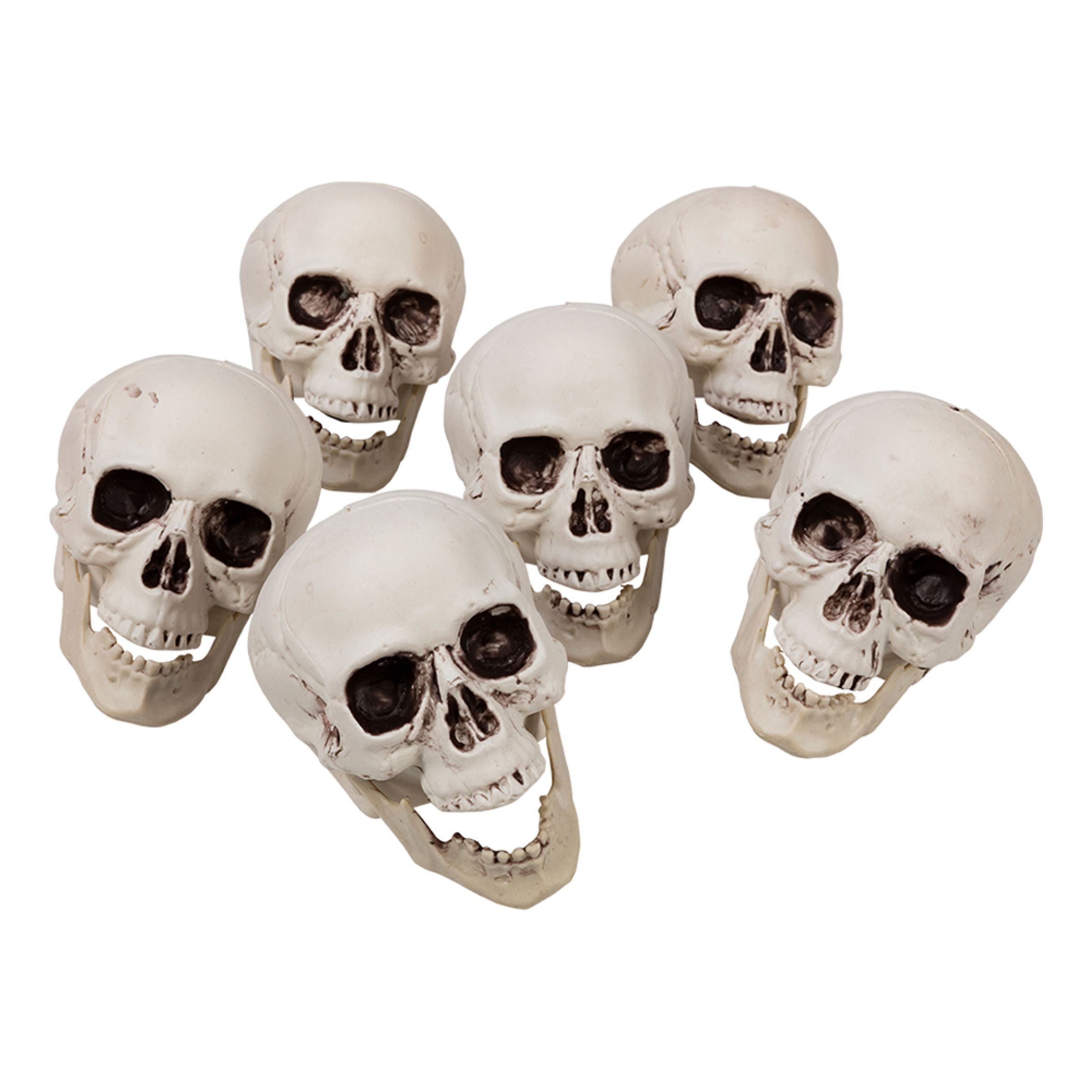 Dödskallar i Plast består av sex stycken kranier som alla kommer med en rörlig käke. Dödskallarna passar utmärkt att använda som rekvisita eller bordsdekoration till exempelvis Halloween.