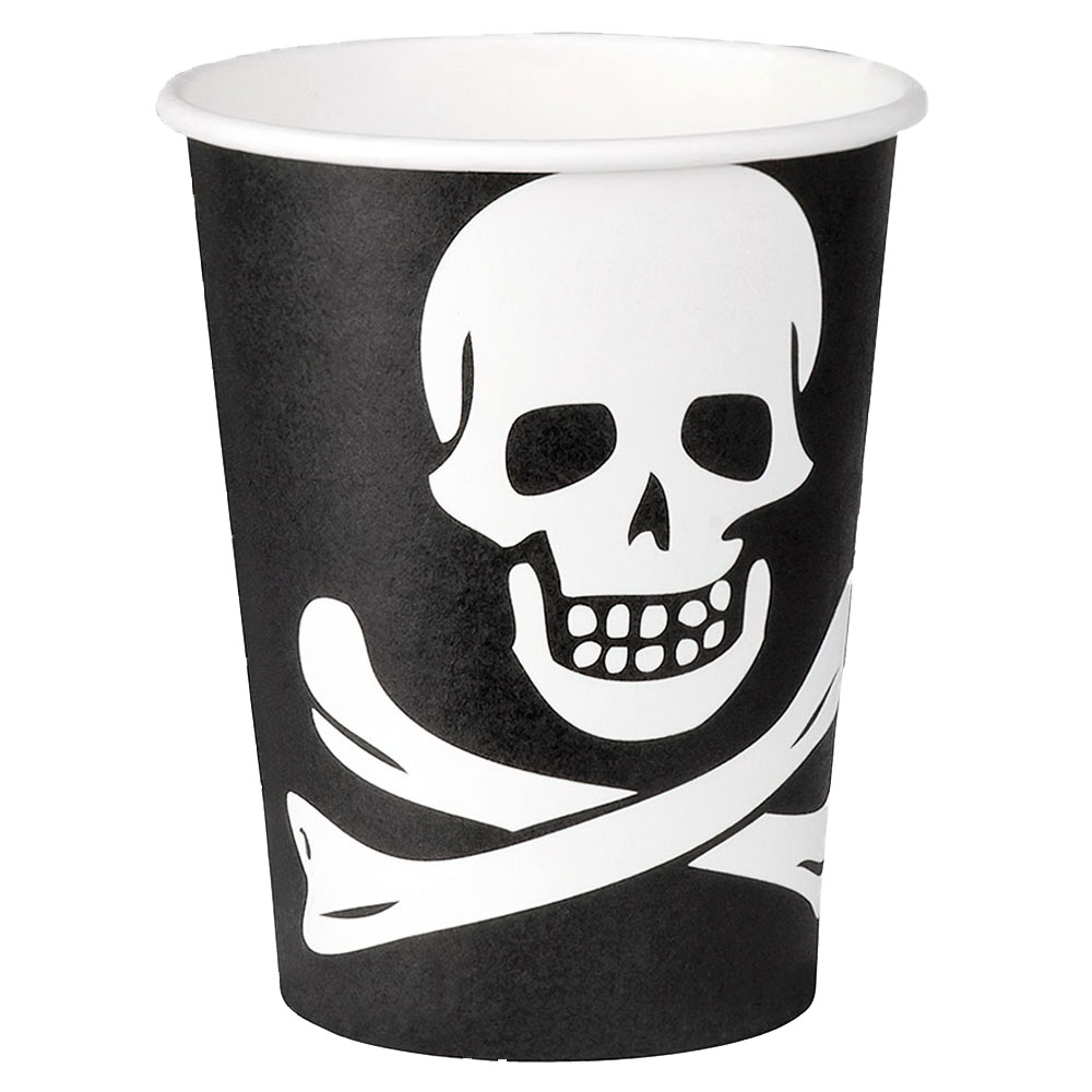 Vill ditt barn ha en cool dödskalle mugg till fest och kalas med pirattema är dessa häftiga pirat pappmuggar något att spana in! Festliga muggar med vit döskalle som för tankarna till tuffa pirater och sjörövare, perfekt för alla barn som vill ha pirat-kalas och barnkalas med extra mycket pirat känsla.