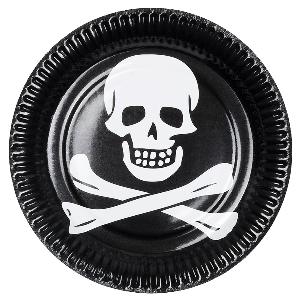 Är ni på jakt efter coola tallrikar till fest och kalas med pirattema har ni kommit rätt! Häftiga kalas tallrikar med cool dödskalle som blir en utmärkt dukning till kommande pirat-kalas, perfekt papptallrikar för alla barn som vill gå all in med pirat känsla till fest och barnkalas.