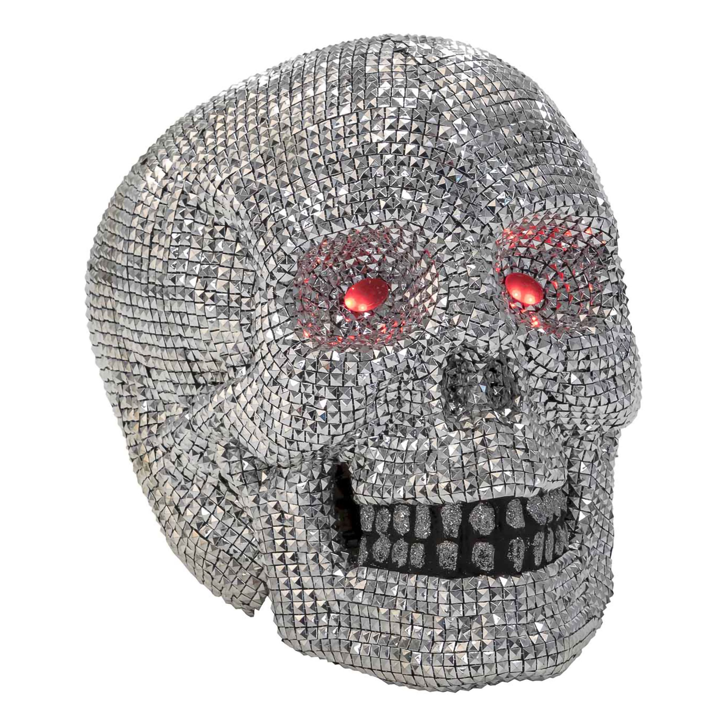 Om du ändå är sugen på att införskaffa dig en döskalle, varför inte slå till på den här coolingen! Pyntad i skimrande silver med lysande ögon kommer denna rackare bli ditt bästa köp av dödskalle någonsin!