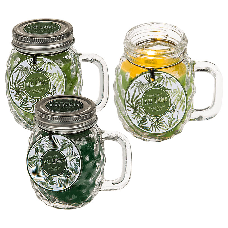 Gör både ögon och näsan en tjänst och shoppa ett härligt doftande lukt-ljus med en doft av ökenkaktusblomma eller en blandning av eukalyptus och mynta i dekorativa glasbehållare med handtag och lock.