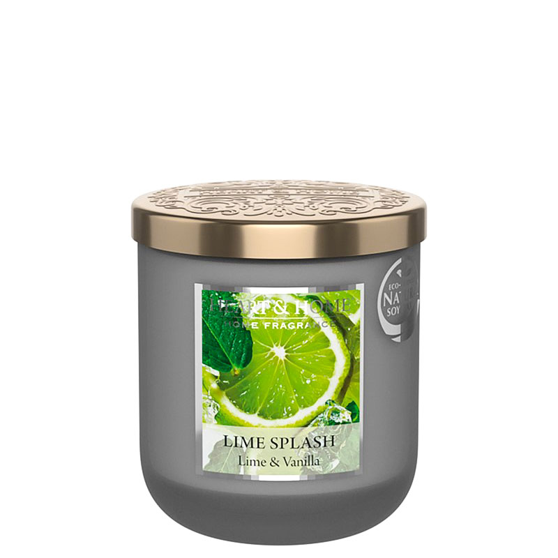 I glasburk med snyggt silverfärgat lock har du här ett riktigt härligt doftande lime och vanilj lukt-ljus . Detta levande ljus av soja-vax med härlig doft kan höja mysfaktorn varhelst den befinner sig så låt den bli din bästa spridare av doft.