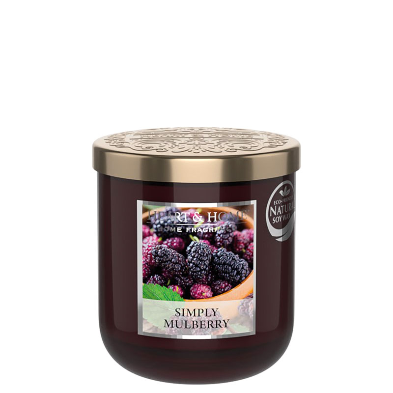 Med härligt doftande mullbär blir detta lukt-ljus en fröjd för den som gillar fruktigt och sött. Tänd ditt levande doft ljus av soja-vax som kommer snyggt levererat i en glasburk med utsmyckande lock i silverfärg, sen är det bara att njuta.