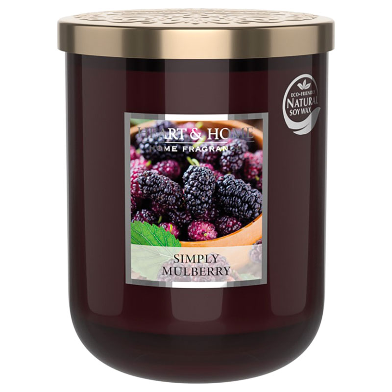 Med härligt doftande mullbär blir detta lukt-ljus en fröjd för den som gillar fruktigt och sött. Ditt levande doft ljus av soja-vax kommer levererat i en glasburk med utsmyckande lock i silverfärg och väntar bara på att få tändas.