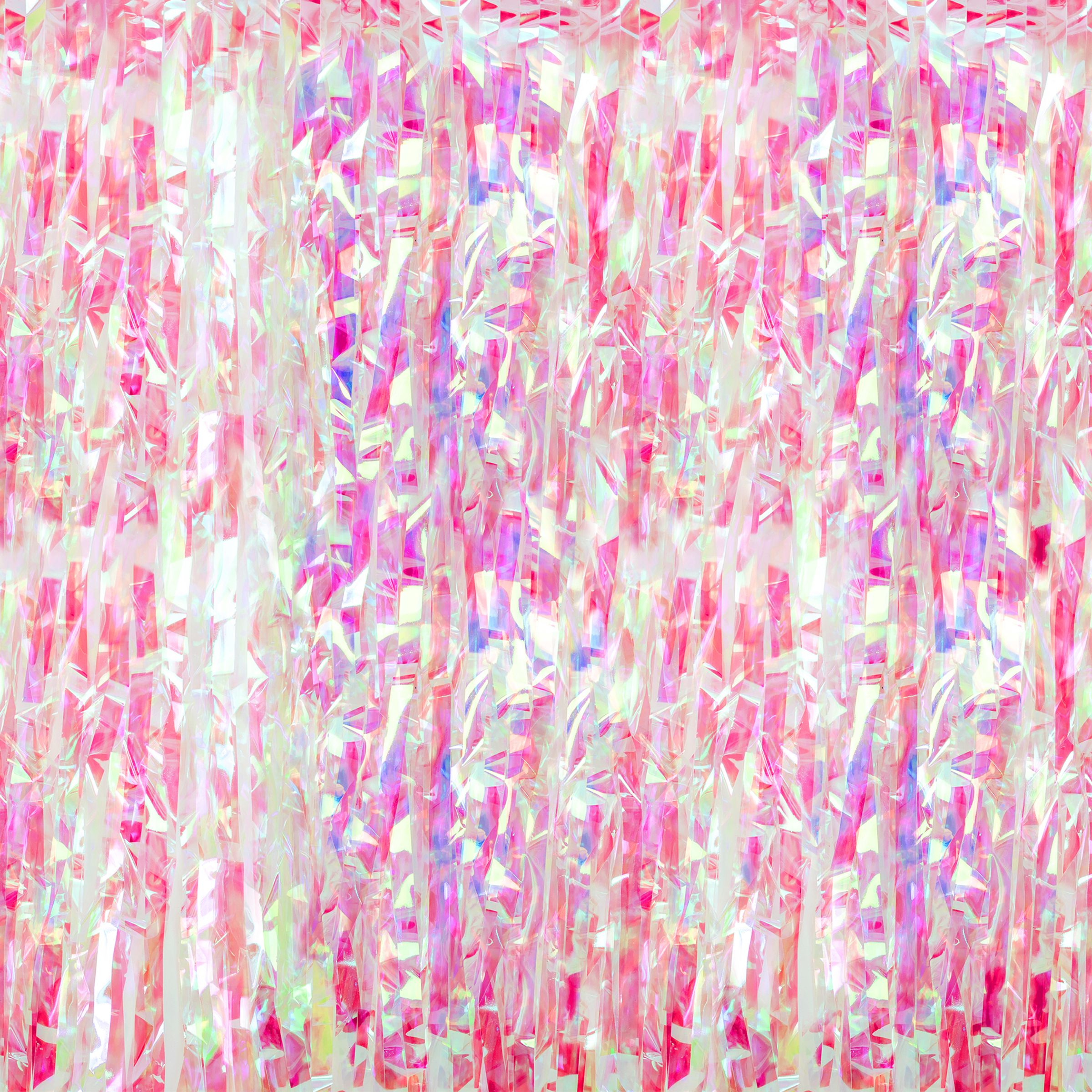Dörrdraperi Rosa Färgskimrande är ett rosa iriserande draperi av långa folieramsor som passa lika bra till födelsedagskalaset som till en baby shower, schlagerfest eller temafest. Draperiet hängs enkelt upp med tejp eller liknande.